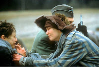 Así las cosas resulta que durante los rituales que hacen para conmerar el tema de la pascua judía, Hannah se ve transportada en el tiempo hasta 1941 en la Polonia ocupada por los nazis. Allí sus padres acaban de morir por las fiebres, que casi tb le cuestan la vida a ella. El desconcierto se apodera de Hannah que no comprende lo que ocurre, cree que está viviendo una pesadilla, y sin embargo todo resulta real para ella. Ahora tiene que vivir en casa de su prima Rivkah (Brittany Murphy). Hay que hacer notar aquí el gran trabajo de Britanny, una actriz estupenda haciendo de chica judía bastante tradicional de una pequeña localidad. Bueno pues a Hannah no le queda otra que integrarse en aquel mundo como pueda. Ese día tienen que acudir a una boda de unos jovenes vecinos suyos. Y resulta que cuando estám en plena ceremonia, llegan los nazis arrasando con todo, y los meten a todos en camiones para llevarselos a un campo de concentración-exterminio.