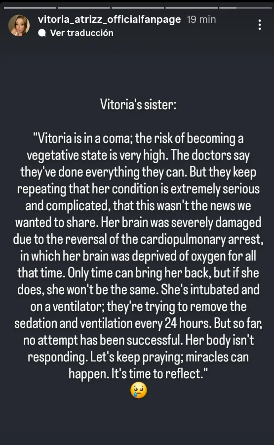 De casualidad entre ayer en la noche a X y el último mensaje que decía era que la cuenta de Vittoria Beatriz iba a ser suspendida. Los últimos tweets que leí fueron de su hermana supuestamente indicando que solo pedía oraciones porque estaba mal la brazuca (sobredosis de antidepresivos) y con altas posibilidades de quedar en coma. No sé si era algún chistoso que le robó la cuenta pero no era la primera vez que entraba en depresión al parecer. Hace un año o más me interese en probar pero noté esos espacios donde se desaparecía por salud mental y decidí no arriesgarme a una atención y que luego apareciera con algún cuadro de depresión como la china Thaina Fields :( . Buen momento para recalcar la importancia de la salud mental... las productoras que tenemos son chicha pero deberían invertir un poco en ello... ya serían 2 que se le van a Milky.