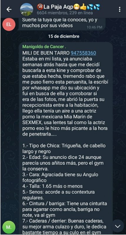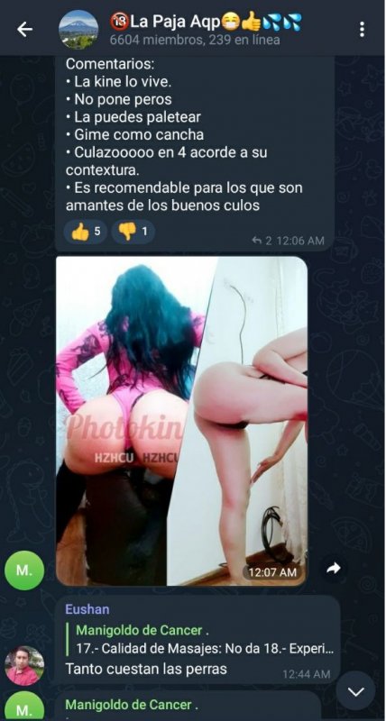 Hace tiempo hice una opinión de esa flaca no pasa nada me la tire hace tiempo, ya por qué me cansé de buscar buenas kines y estaba recontra arrecho ese día pero nada del otro mundo es como cuando te tiras una flaca de la dolores aparte más seca y estrecha que me llegó prácticamente le.regale billete por qué no hicimos nada mas que conversar hasta me dió su número para que la busque pero ahí nomas kineaba por migraciones como dicen mucha promo la mayoría de kines peruanas son de ese vuelo, bueno ya casi no kineo por cuestiones personales que tenga tiempo lo haré pero veo las de siempre un par de las yanahuara la tía Isabella, la Palomino que ya no kinea de ahí las de vinatea que ahí nomas en otras partes hay mejores por ese precio pero así está aqp pues las demás son estafa lo de siempre.