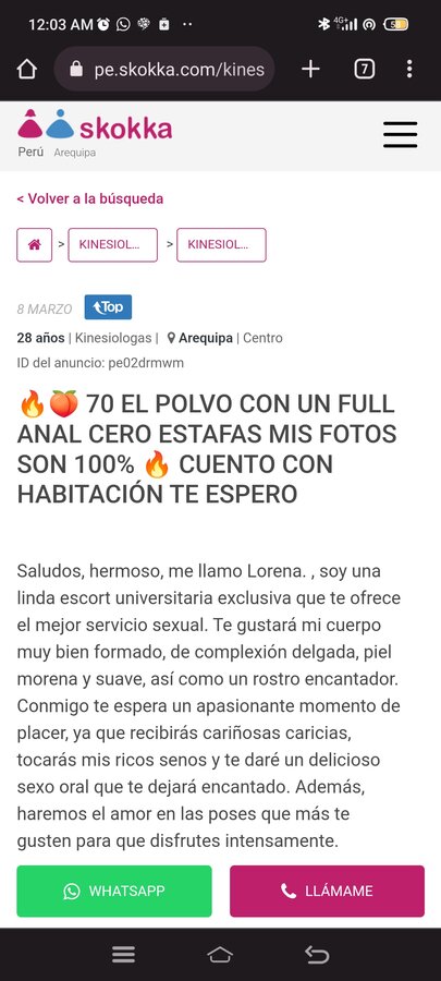 disculpen pero de pasada por esta mi hermosa ciudad me quice dar un gustillo con la negra ANDY atendia por zamacola pero su telefono no funciona, quiza alguien tiene su contacto o sabe algo de ella estare agradecido por su aporte