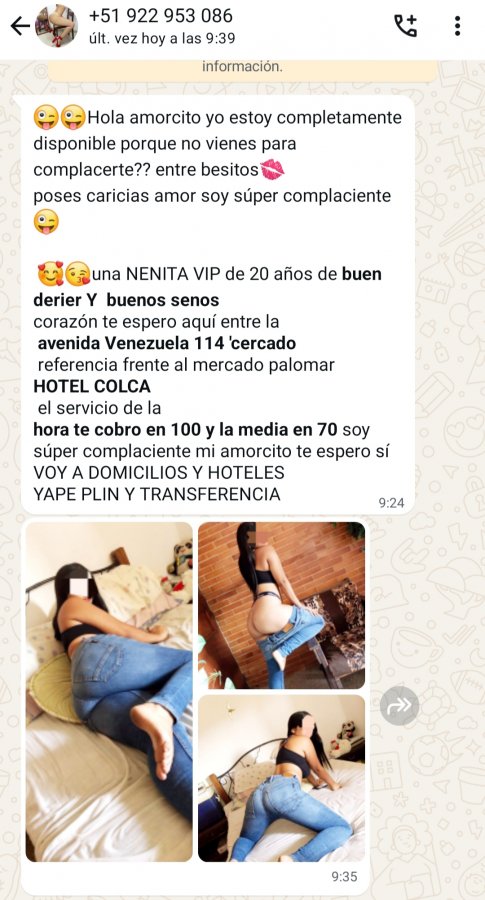 Hola cofras, saque cita con una limeña que viene para Arequipa la próxima semana pero ya se me pasó la calentura me costó 250 , nose si alguien se interese me avisa , pero esta rica la flaca por eso me gano la arrechura cofras, ya si nadie quiere iré noma y les contaré mi experiencia jaja