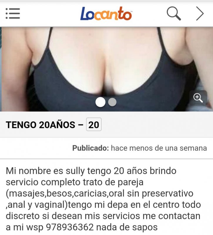 Algun cofra que se haiga atendido con estas chicas anuncian en la página de Locanto diciendo que atienden en la región de ICA, una se llama Xiomara y la otra Sully, será real sus servicios o estafa, me entra la duda ya que sus post están por varias ciudades del Perú, agradeceré sus respuestas.