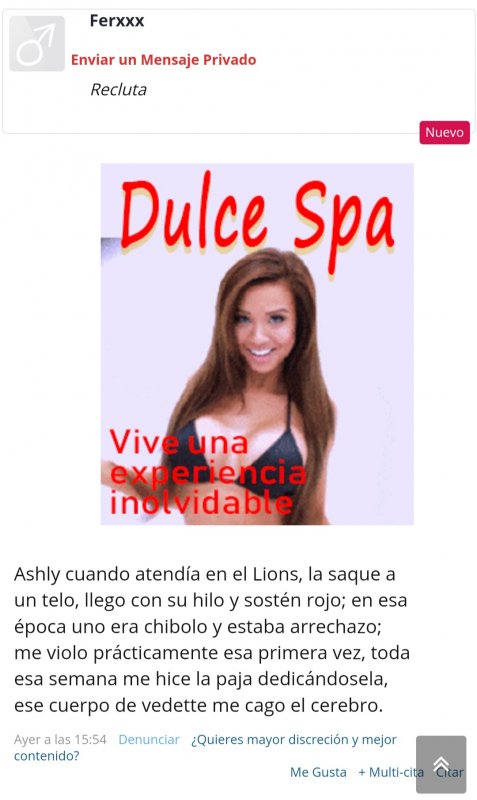 como olvidar a Ashly en su paso por el lions era un espectaculo verla pasear con tremendo culazo y los tatuajes, ademas que se dejaba paletear te arrechaba y te agarraba la pinga para que te animes a subir, cuantas veces cai con esta flaca, la terna de hembras en ese entonces eran ashly, michelle y una mas que no recuerdo su nombre, las 3 eran lo mejorcito del local y a cada rato paraban ocupadas, siempre salian con el chupetin en la boca para arrecharte. De eso ya habran pasado sus 10 años facil, ahora no me imagino como está pero ya se veía que la flaca consumia alucinogenos porque andaba muchas veces pasada. Triste final, fue un cuerazo en su epoca, cuantos km de pinga habran pasado por ahi, asi me regalen el polvo no atracaría con ella, prefiero quedarme con el hembron que fue en la epoca del lions.