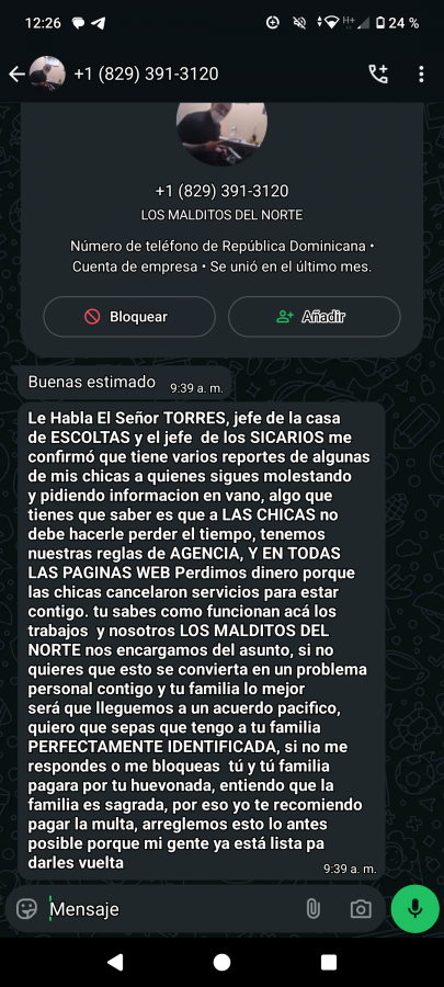 Gente, me acaba de llegar este mensaje de un numero extranjero. Es la primera vez que me pasa y no se que hacer. He leido por aca a algunos que nunca pasa nada pero no se si es mejor denunciar esto. Dice que tiene ubicada a mi familia y no se que hacer. Les dejo el mensaje. Que me recomiendan?