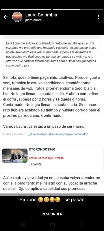 Una mas de las publicaciones de Laura, cuando me atiendo con ella se burla de las sonseras que inscriben algunos de sus ca..cheros
