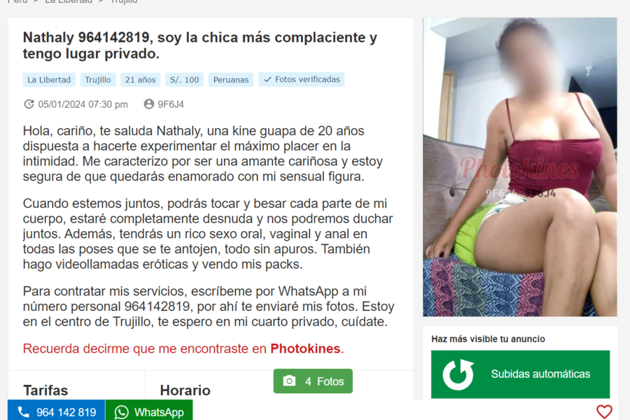 -Lleva DNI y la cantidad de dinero que quieras invertir, la entrada esta 5 soles, el servicio normal esta a 50 soles , si deseas un servicio adicional tendrías que conversarlo con la fémina, por ejm el anal, que hasta te pueden pedir el doble algunas.