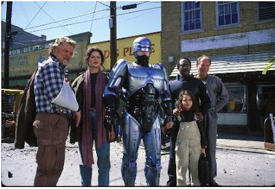 [h=3]El rodaje[/h]La filmación comenzó en el verano de 1986 y duró desde el 6 de agosto hasta mediados de octubre. La escena de la "muerte" de Murphy no fue filmada hasta enero del año siguiente (1987), unos meses después de que la filmación principal estuviese terminada. Muchos de los entornos urbanos de la película fueron filmados en el centro de Dallas, Texas, debido a la apariencia futurista de los edificios. La Torre Reunión es también visible en el fondo cerca del final del metraje. La parte frontal del Ayuntamiento de Dallas fue utilizada como exterior de la sede de la OCP, combinada con el uso de la técnica de pintura mate para que el edificio pareciera más alto. Las escenas de la fábrica de acero fueron filmadas en Wheeling Pittsburgh Steel Monessen, en Monessen, PA. [5] Peter Weller se había preparado mucho para el papel con un traje acolchado (supuestamente, el traje real de RoboCop llegó con tres semanas de retraso). El tiempo apremiaba y el traje llegó al set, sin embargo, Weller descubrió que era casi incapaz de moverse en él como lo había planeado, por lo fue necesario más tiempo para acostumbrarse. Weller reveló más tarde a Roger Ebert que durante el rodaje estaba perdiendo 1,5 kg al día debido a la pérdida de agua, ya que el interior del traje de Robocop estaba a unos 38 °C [6] El asistente personal de Peter, Todd Trotter, fue responsable de la refrigeración del actor entre las tomas mediante ventiladores eléctricos, y si la toma lo permitía se conectaba el traje a un sistema de aire acondicionado. Más tarde al traje se le adicionó un ventilador.