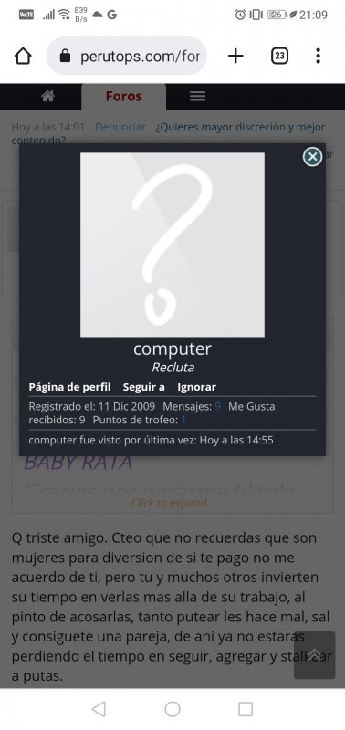 Enfermizo son ustedes q sacan cara por personas q no conocen!, q ahora se quieren hacer los angostos taraditos, todos tenemos diferentes fetiches y somos libres de disfrutarlos como queremos o ustedes creen que entrarle a putas no es un fetiche, o grabarlas o compartir fotos o videitos donde salimos nosotros mismos, ahora se quieren hacer los angostos, cuando ustedes mismo disfrutan y comparten de las mismas mujeres que nosotros lo hacemos, no sean cabros y dejen de juzgar, si no es su vacilón callense y pasen de frente nomas, ******.