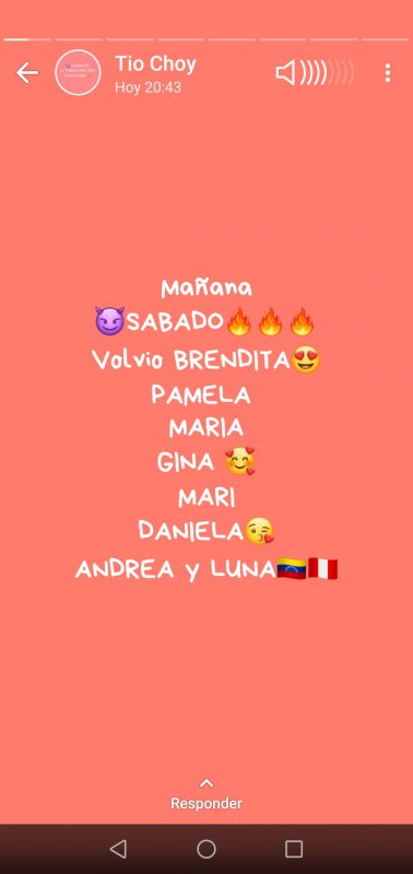 Jajajka. Q. Mierd 12 hora alv menú pa. Mañana sera la chama brenda?? O. Choy teclea wada