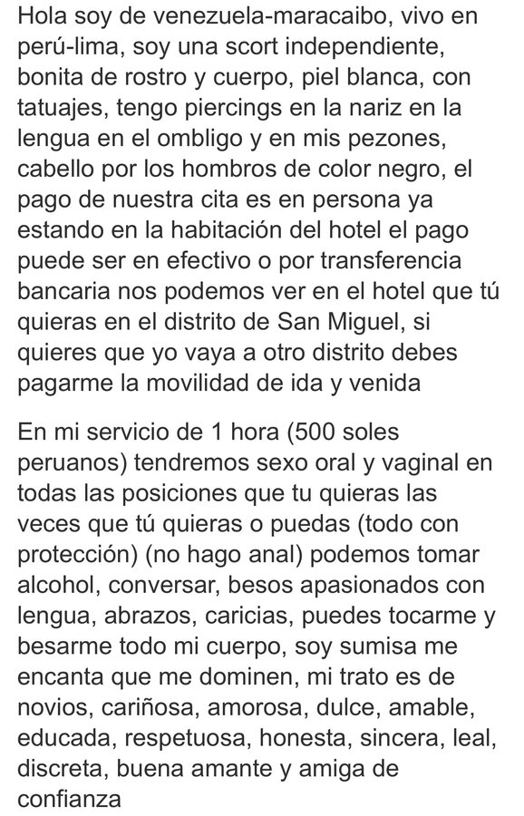 Post mas arriba esta el numero de la Keryanni...mandale mensaje por wasapht y espera q te conteste...al parecer varios esperaban su regreso y se lleno de citas q hasta ya no necesita publicarse...eso tambien paso la ultima vez antes q Sherk la cafichara con el 0nly...por mi parte ya tuve suficiente con esta venequita de piel palida...
