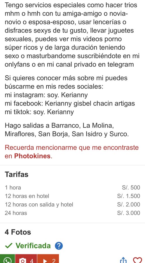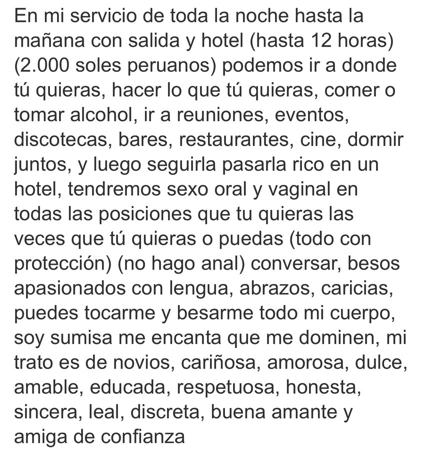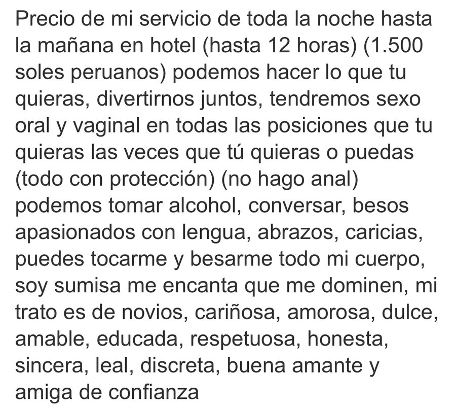 Miren hermanos si están buenas las tarifas de los servicios de Kerianny le diré cuando tenga el dinero para una hora por que mi sueldo si no da para las 12 horas