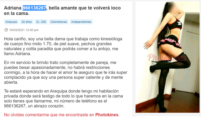19.- Anuncia en: SUPONGO que en Photokines es la que figura como como Mariana 982556254 y nuevamente aclaro NO ES LA DE LAS FOTOS
