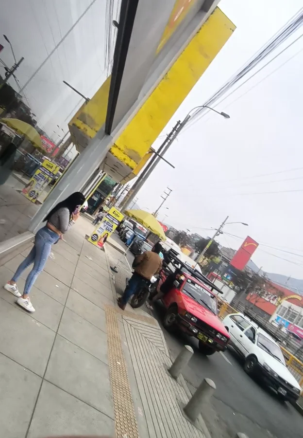 Me La encontré frente al plaza vea de Pascana por el telo que esta allí conocido de La zona, ropa de tapu, senos casi al aire por el escote