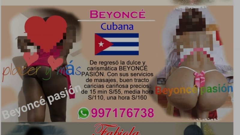 Sobre Beyonce, es cierto eso de sus rollazos, cuando vino por 1ra vez y se instaló cerca al mall de porongoche tenía rollos pero no demasiado, eso sí, buen cul... Luego regreso a finales de año 2020 y fui a su encuentro por el buen trato que da y con la esperanza que haya mejorado en cuerpo, pero empeoró.