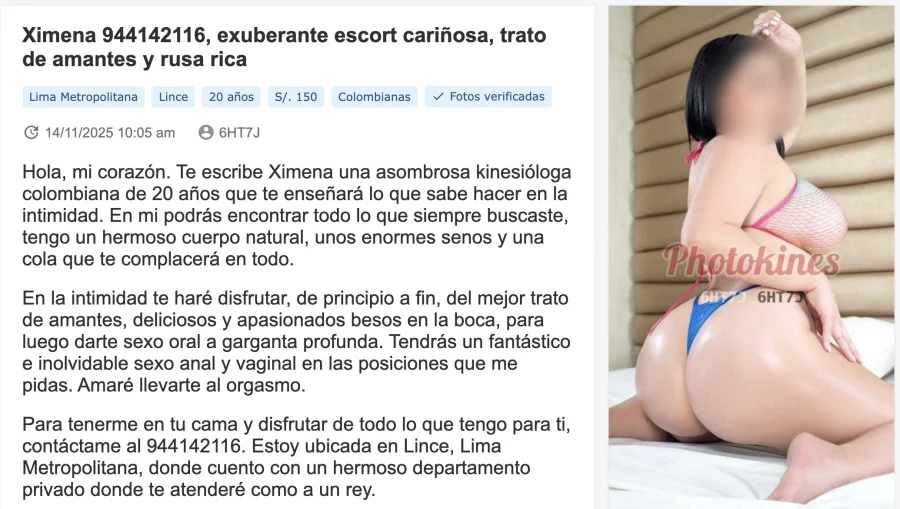 Ella tenía un par de perfiles. El año pasado solía atender en Lince. Algún cofra mencionó haberse atendido en Lince con ella, sin embargo, las referencias no eran muy buenas.