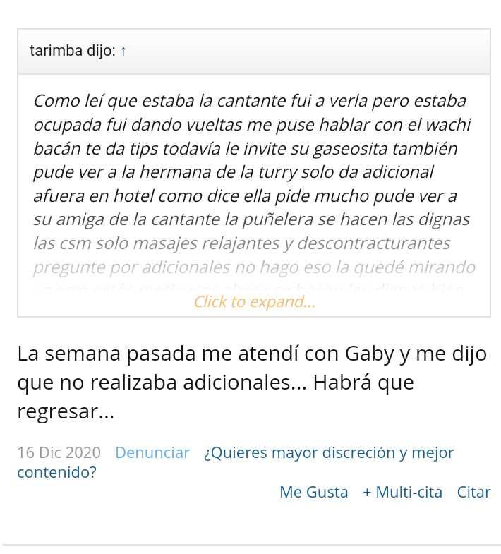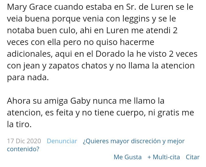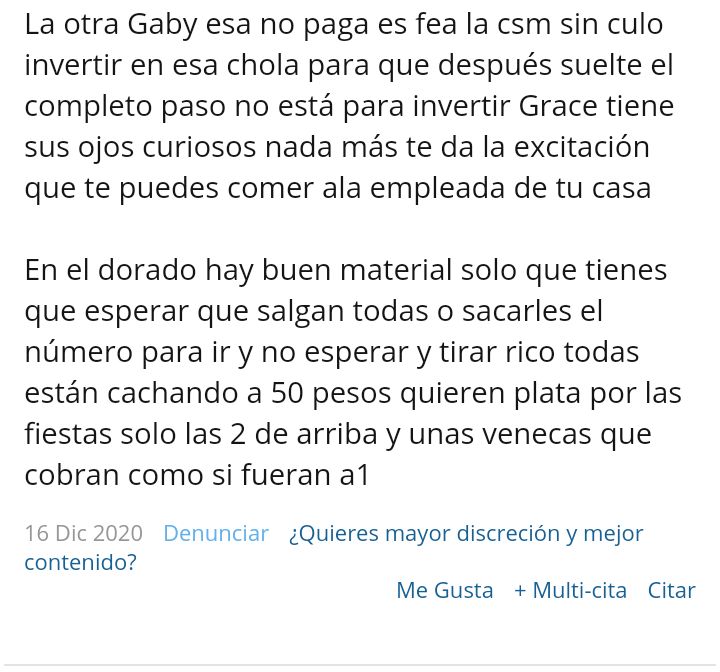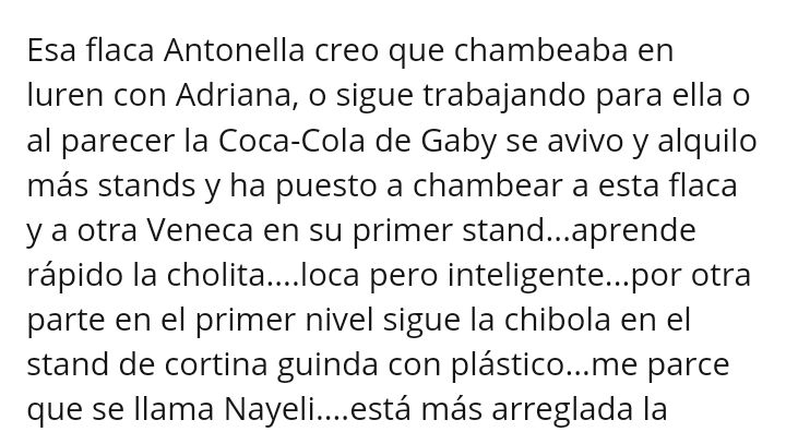Claro, solo estoy haciendo detalles. Para que Carlitros que oara todo el día también hable de las demás que hay. Más aún que he visto que llegan por un día o dos y luego fugan y alguna hay rescatable.