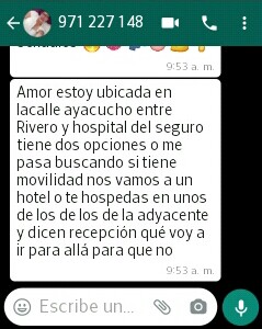 23.- Local: Hs Romance completo con cochera agua tibia, tv 30 soles la habitación, aquí también están con la pendejada de "cuanto tiempo se va quedar"
