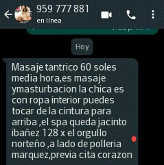 Cofra pero que incluye el masaje, precios??, hay golo golo?? Ese número es de las flacas que estaban por el King broaster de Paucarpata y luego se fueron al frente del banco de la nación, si no cambiaron de material no pasa nada….cuenta como te fue.