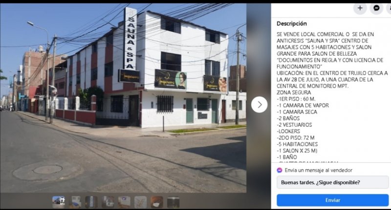 Ayer estuve x Junín la ultima cuadra casi casi para salir a la Av. España casi en una esquina hay un centro de masajes y terapias...vi a una tía pinta de veneca..alta morena..crespa con un señor culo...iva a cruzar para pedir inf. Pero justo la tía se metió u salió un pata pelao...esperé al frente para ver si nuevamrnte salía la tía y nada...salió otra veneca mas delgada..blanca...pero con pinta de ser terapeuta...y que si hacen trabajos de rejabilitación...pero si me quedé con la duda de esa tía morena