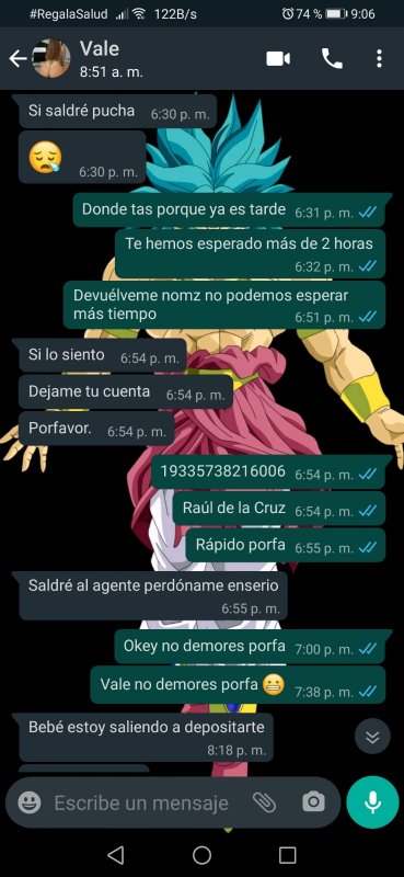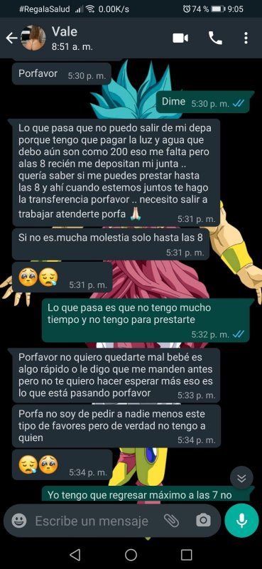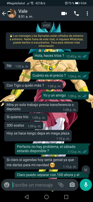 Quedamos para las 3 pm y nada la espere , como seguía contestando normal. Luego me quería chambear para que le preste plata pero me cerre, que decía que el tio del alquiler no le dejaba salir. Ni modo me agarraron en mi dia de huevon, pero aca les paso la nota por si alguien se la quería jugar ya saben que esa perra no es profesional