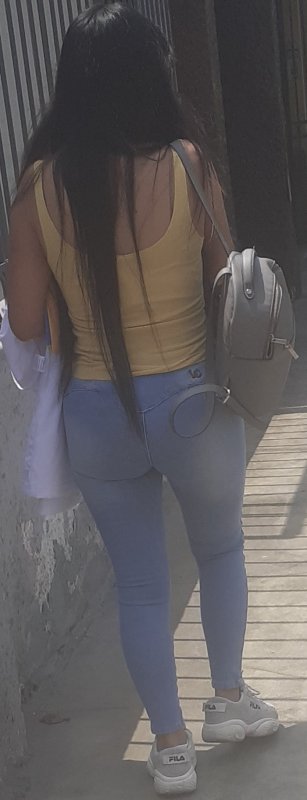 Chibola chatita de buenos glúteos, dirigiéndose al encuentro de su lover, en Lloque Yupanqui-JM.